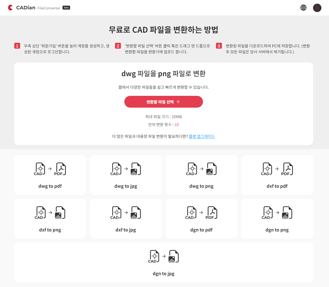 캐디안 파일 컨버터(CADian File Converter) 서비스의 도움말에 오신 것을 환영합니다.